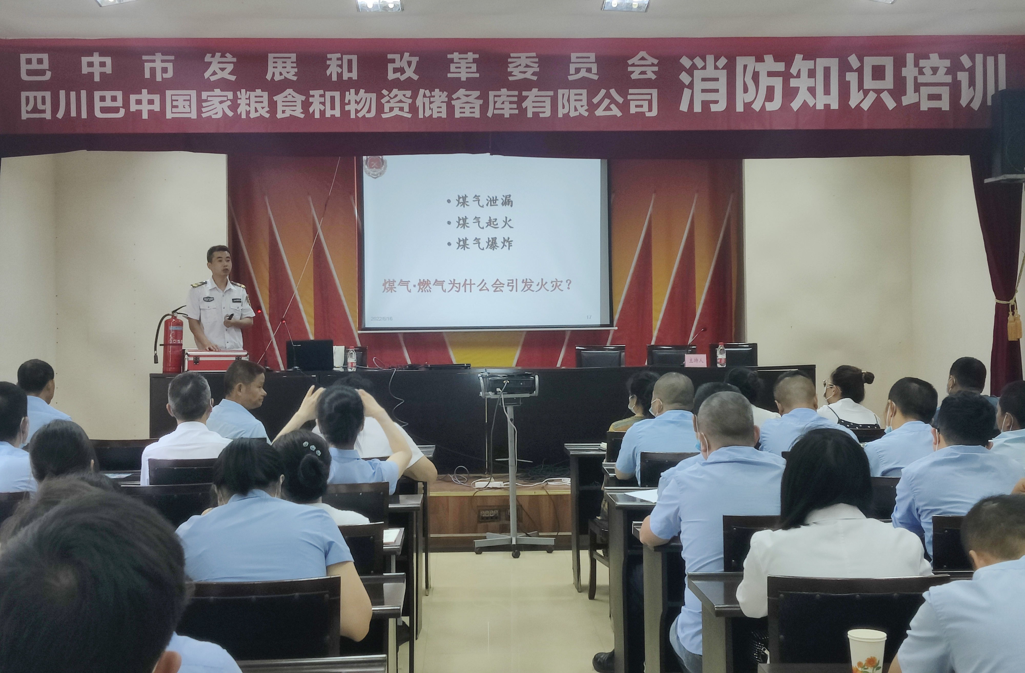 為切實(shí)開展好2022年的安全生產(chǎn)月活動(dòng),建立有效的防范和處理火災(zāi)事故的工作機(jī)制,提高公司員工在遇到火險(xiǎn)時(shí)逃生、自救能力,確保糧食儲(chǔ)備、公司財(cái)產(chǎn)和員工人身安全,巴中市發(fā)展和改革委員會(huì)、四川巴中國(guó)家糧食質(zhì)量監(jiān)測(cè)站和四川巴中國(guó)家糧食和物資儲(chǔ)備庫有限公司于6月23日聯(lián)合舉辦了消防知識(shí)理論培訓(xùn)和滅火模擬演練活動(dòng)。